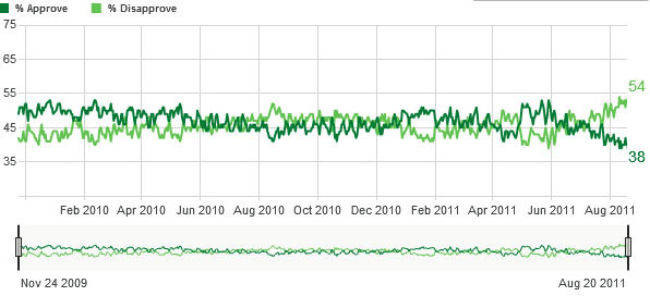 Este es el porcentaje de estadounidenses que, según la última encuesta Rasmussen, creen que Obama está haciendo una buena gestión económica.